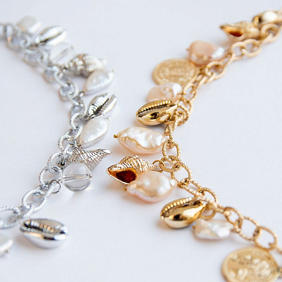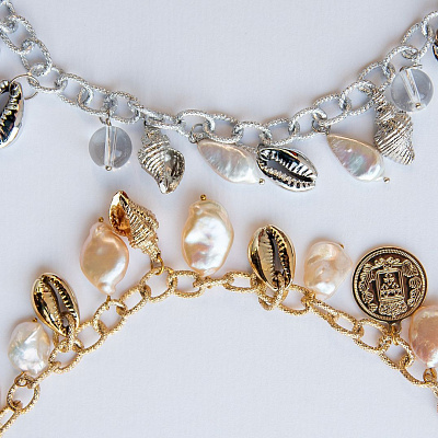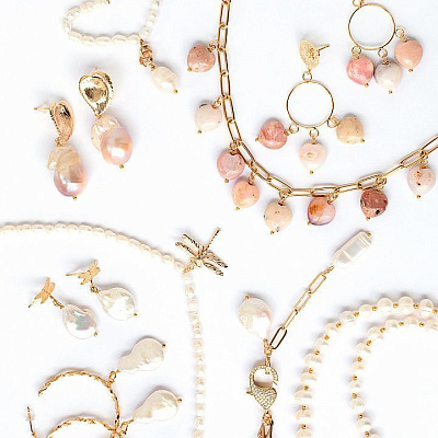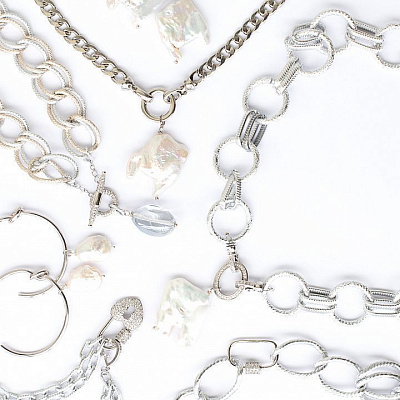 Ювелирная фурнитура, речной и барочный жемчуг, ювелирные замки и элементы, инкрустированные цирконами. Камни и не только используются в создании аксессуаров. Огромный выбор цепей, чокеров, колье сережек.