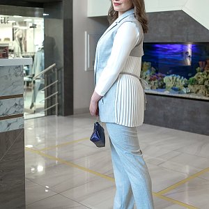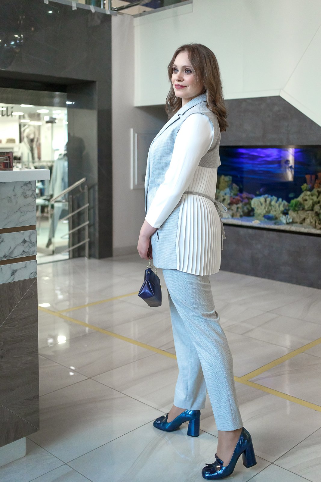 Два чудесных платья и брючный костюм идеально сели на Ольгину женственную фигуру. При этом ансамбли подобраны в современной комплектации, с яркими акцентами, подчёркивающие силуэт. Главной стала идея передать настроение легкости и создать образ молодой стильной женщины. Смотрите фото, как это у нас получилось!